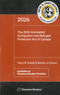 The 2026 Annotated Immigration and Refugee Protection Act of Canada by Goslett 9781038218964 *SPECIAL PRICING, FINAL SALE* [ZZ]